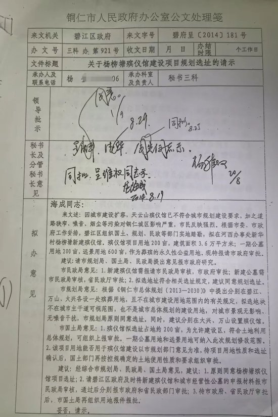 详述叶文洁等人的遭遇,要回溯到十余年前。彼时,铜仁市正计划搬迁老殡仪馆。一份铜仁市政府的公文显示,因城市建设扩容,现有的天云山殡仪馆已不符合城市规划建设要求,加之道路狭窄、噪音、烟尘等污染,市民反映强烈,当地拟在河西办事处新华村杨柳塘新建殡仪馆。